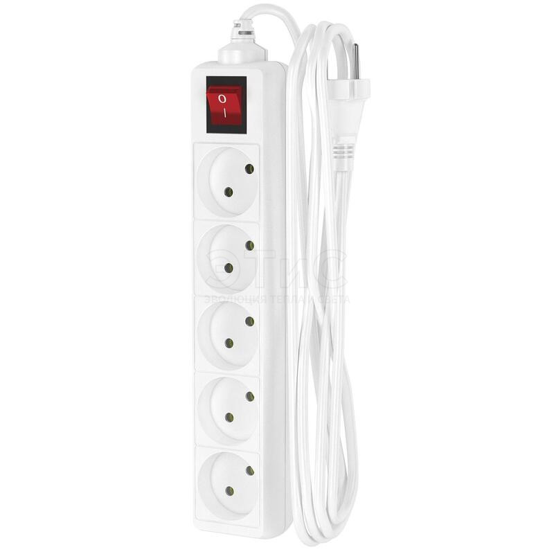 Удлинитель сетевой Б/З 10А 220В IP20 5х3м 10-35S с выкл. белый