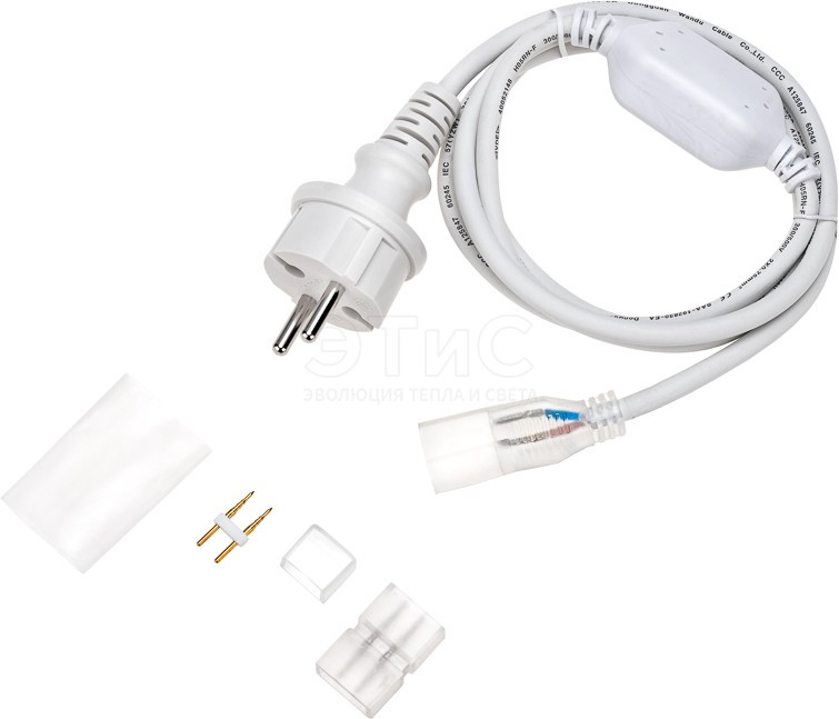 Набор установочный для одностороннего гибкого неона 8х16мм (шнур питания каучук с диодным мостом и вилкой заглушка переходная муфта игла) 1.5м