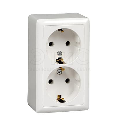 Розетка двойная наружная З/К Б/Ш 16А 250В IP20 белая изол.пластина ХИТ