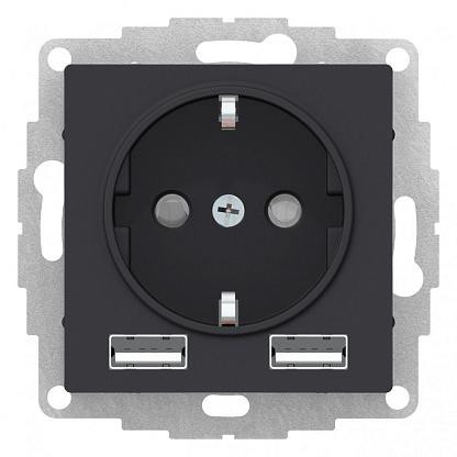 Розетка одинарная скрытая 16А+USB A+A карбон ATLASDESIGN
