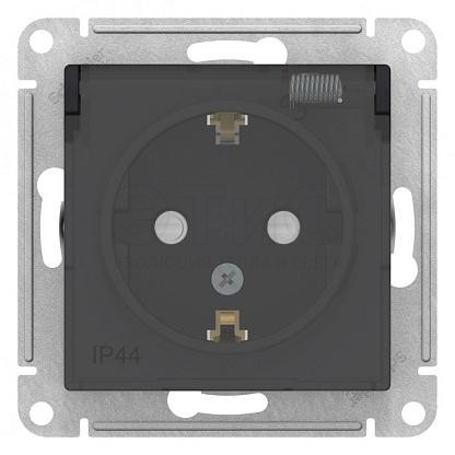 Розетка одинарная скрытая З/К С/Ш 16А 250В IP44 с крышкой карбон ATLASDESIGN