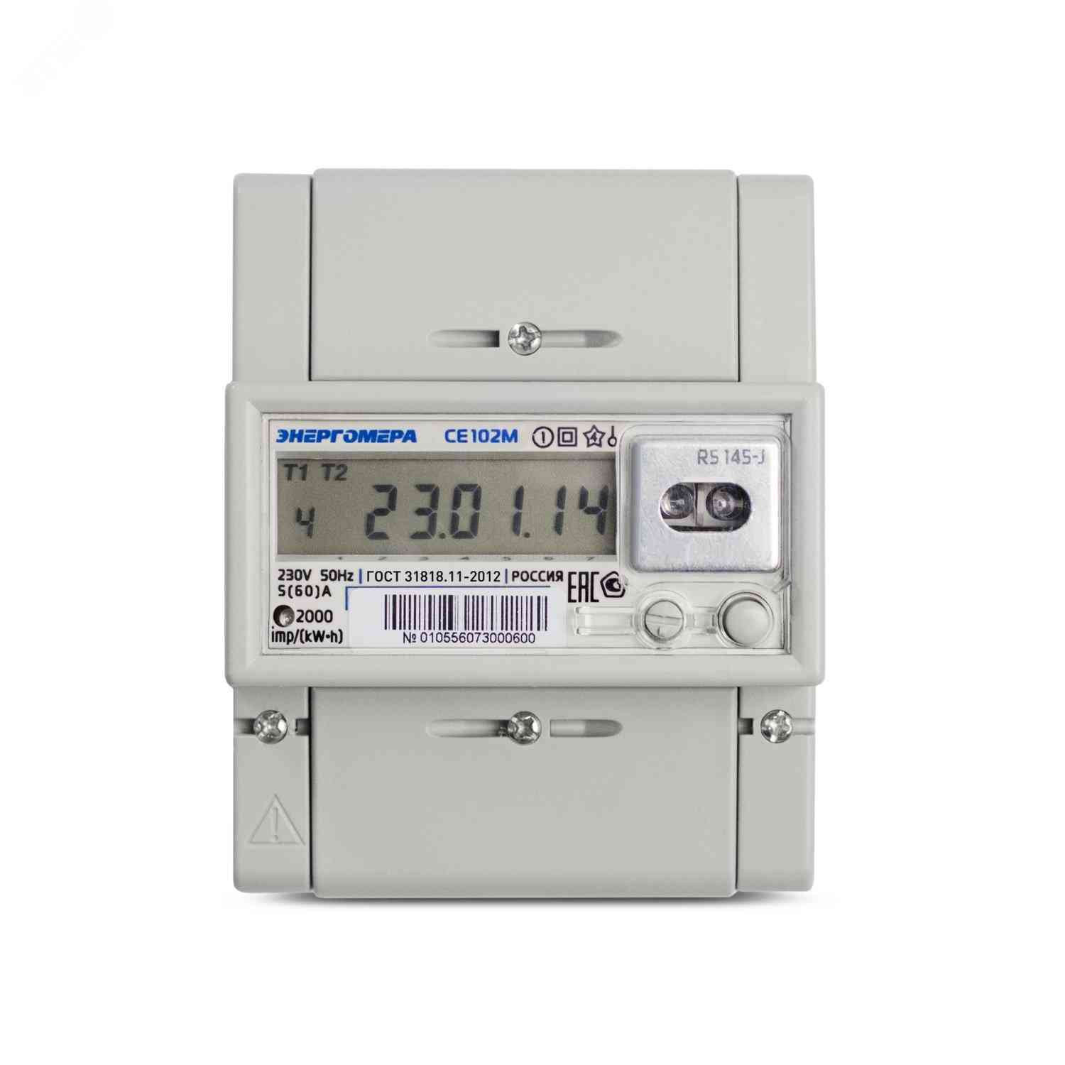 Счетчик электроэнергии однофазный CE102M R5 145-A многотарифный 5(60) кл.точ. 1.0 D ЖКИ RS485