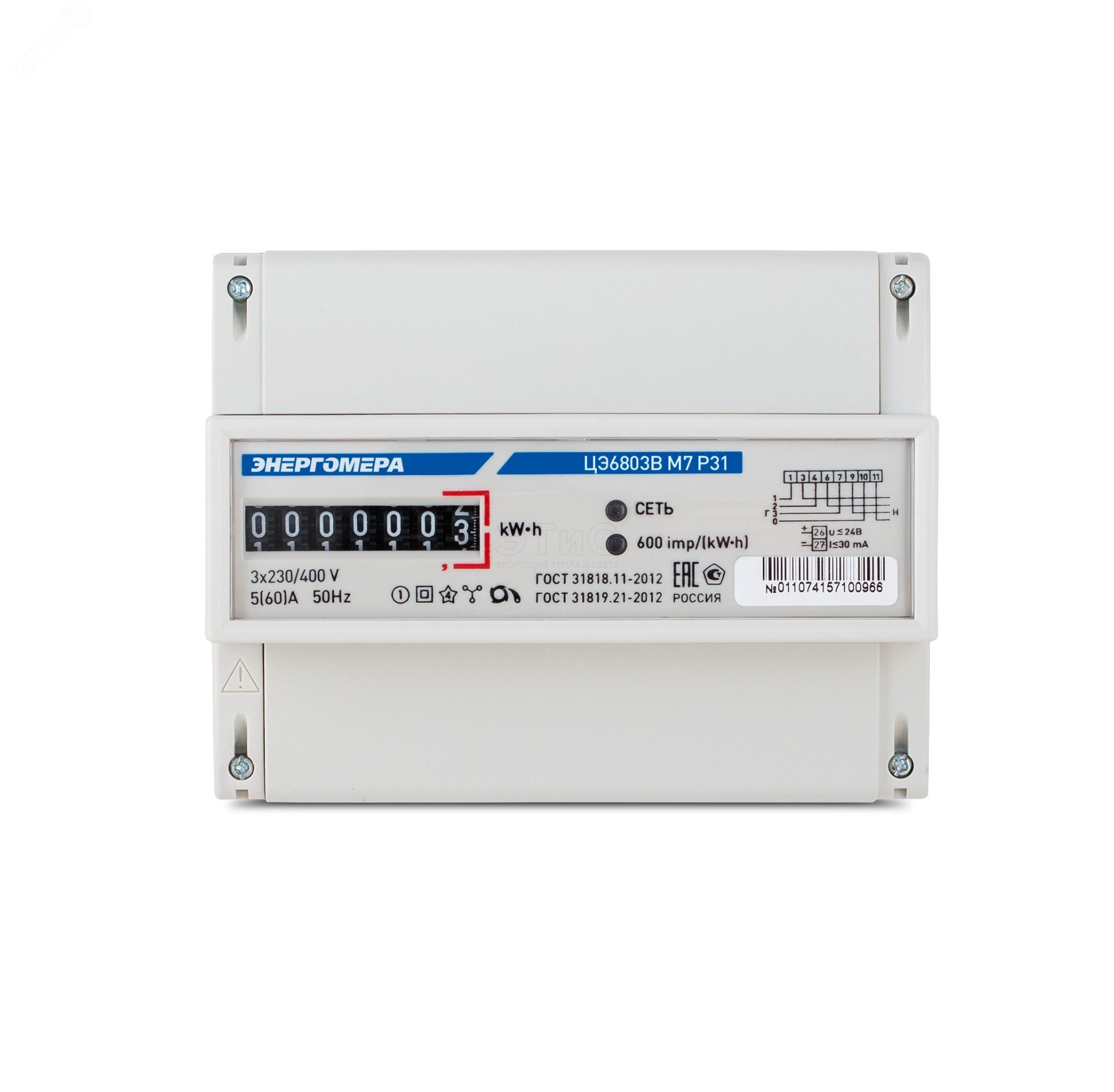 Счетчик электроэнергии трехфазный ЦЭ6803В 1 230В 10-100А 3ф.4пр. М7 Р31 трехфазный однотарифный 10(100) класс точности 1.0 D ЭМОУ