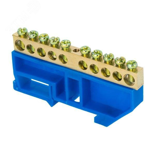 Шина нулевая N 6х9мм 10 отверстий латунь синий изолятор на DIN-рейку розничный стикер PROxima