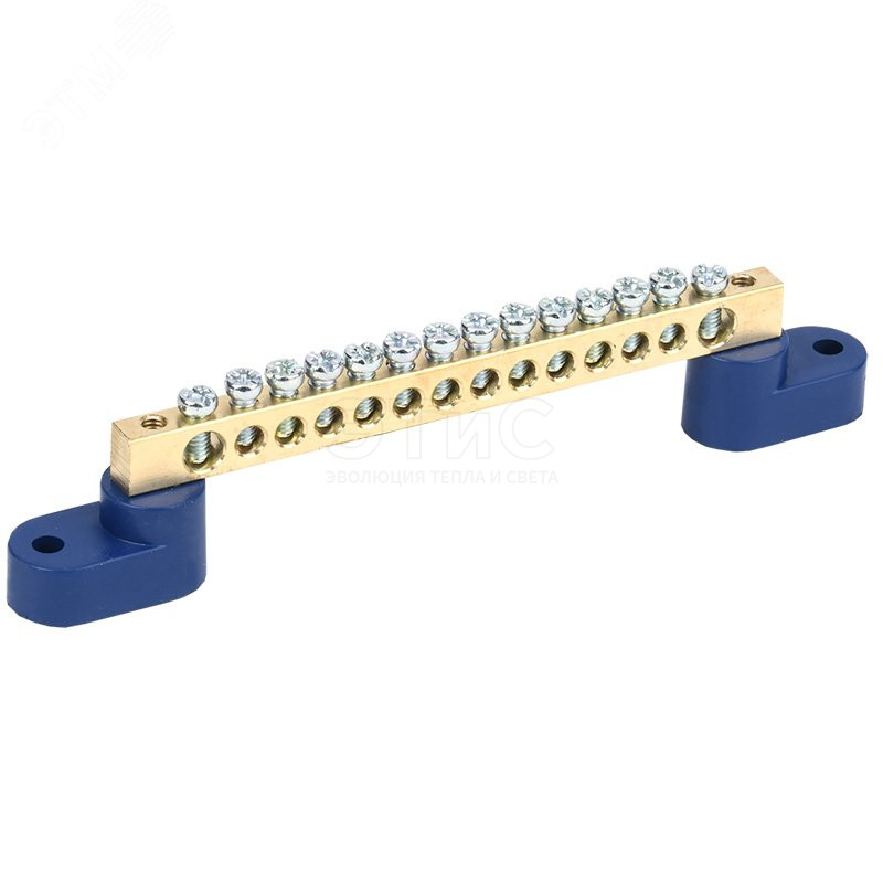 Шина N нулевая 6х9мм на двух угловых синих изоляторах 14 групп