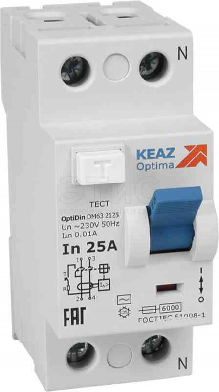 Выключатель дифференциального тока УЗО 2П 25А 10мА АС OptiDin DМ63-2125-AС-УХЛ4