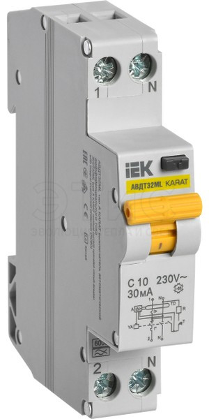 Выключатель автоматический дифференциальный АВДТ32ML 1П 10А 10мА А С10 65кА КАРАТ